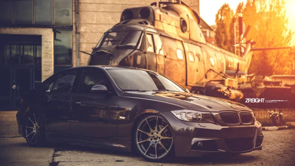 BMW E90 and one helicopter wallpaper optimized for phone & desktop backgrounds