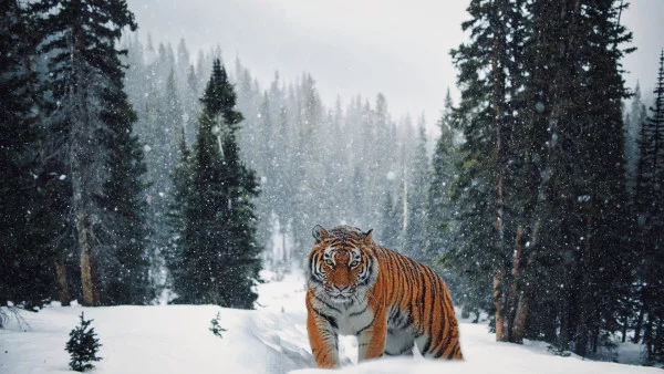 Siberian Tiger in Winter landscape wallpaper optimized for phone & desktop backgrounds